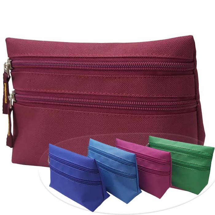 - Снаружи: оригинальная косметичка с двумя параллельными молниями. Один отдел, плоский карман на молнии