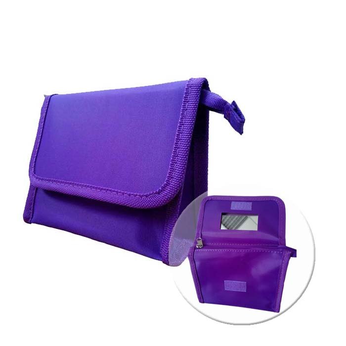- Снаружи: косметичка накрывается клапаном на текстильной застежке