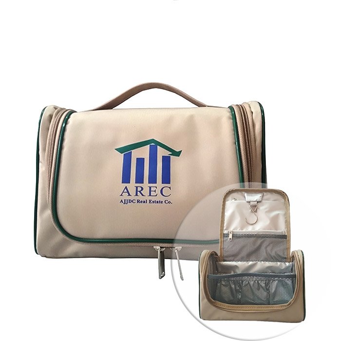 - Снаружи: основное отделение, три кармана на резинке, два кармана на молнии, один из которых под сеткой для хранения влажных предметов. Внутри вшит крючок, что дает возможность повесить изделие в ванной комнате, в поезде.