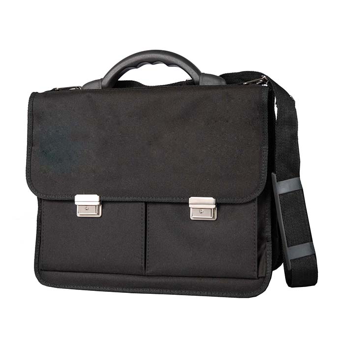 - Снаружи: клапан закрывается на металлические замки. Портфель укомплектован пластиковой ручкой, регулируемым плечевым ремнем.
