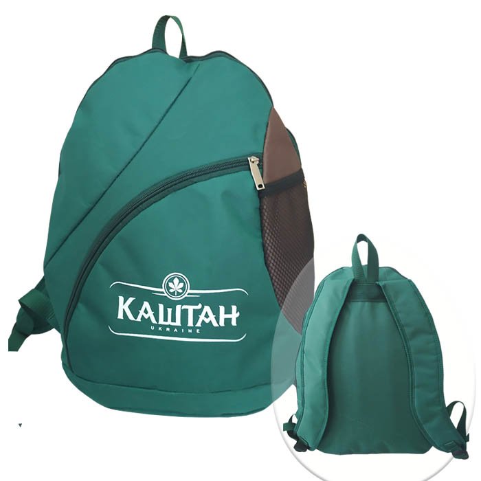 - Снаружи: один отдел, плоский карман на молнии треугольной формы, внутри которого нашит органайзер, сбоку карман из сетки. Спинка уплотнена, сверху вшита ручка. Лямки изогнутые, регулируемые.