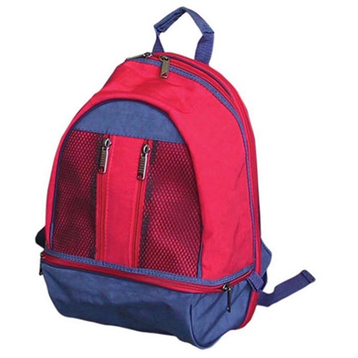 - Снаружи: состоит из основного отдела, на котором нашиты два вертикальных кармана под сеткой и нижнего отдела на молнии для спортивной формы, обуви. Спинка уплотнена, плечевые лямки изогнутые, регулируемые.