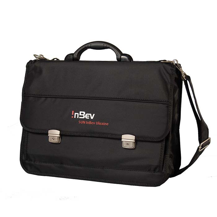 - Зовні: два відділення і кишеня на вертикальних блискавках з органайзером під клапаном. Дно щільне, відкидається при необхідності. Зовні клапан закривається на металеві замки. Портфель укомплектований пластиковою ручкою, регульованим плечовим ременем з наплічником. При пошитті використана високоякісна фурнітура: карабіни, блискавка тип 8, литі замки