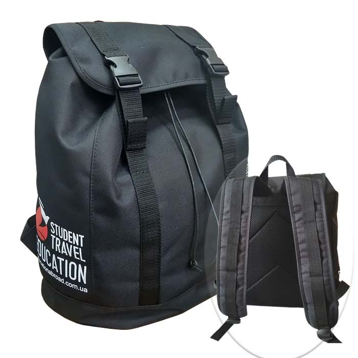 - Зовні: складається з основного відділу у вигляді мішка, який затягується на шнур і закривається клапаном на двох фастексах. Об'єм відділення регулюється за допомогою стрічок. Збоку є кишеня з сітки для пляшечки. Зверху вшита ручка для перенесення виробу в руці. Рюкзак має ущільнену спинку і регульовані лямки, укомплектований якісною фурнітурою.
