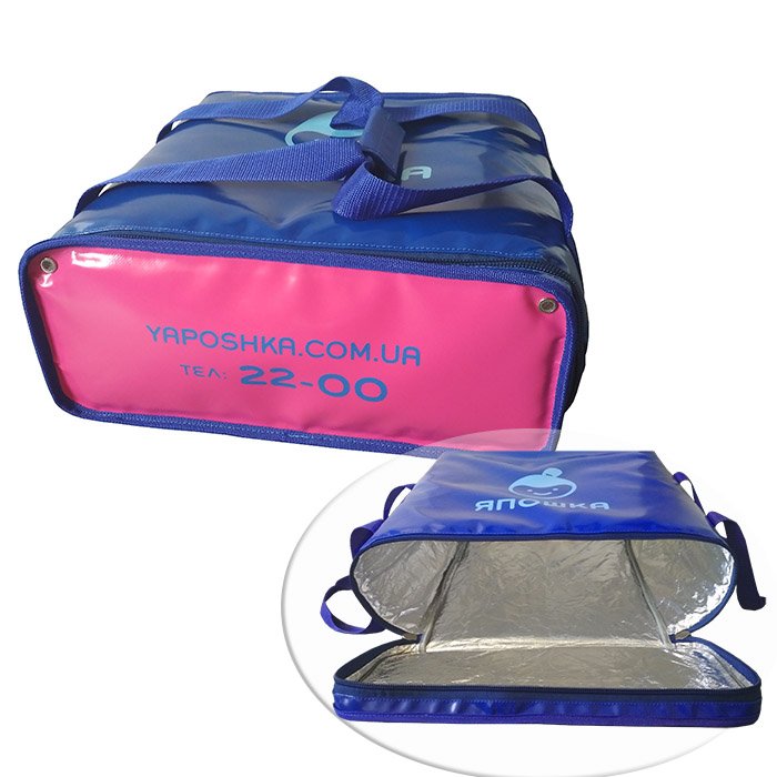 - Застосування: для транспортування охолоджених або нагрітих продуктів (продукти харчування, напої, овочі, фрукти, м'ясні та рибні продукти, випічка та ін.), чутливих до перепадів температури. Підтримка внутрішньої температури сумки може бути забезпечено використанням таких компонентів, як акумулятори холоду