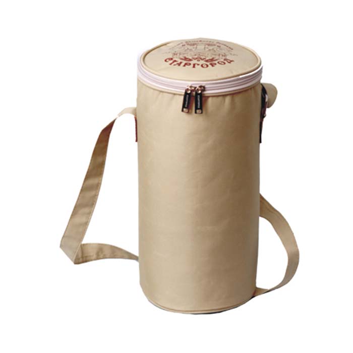 - Зовні: сумка циліндричної форми під 2-х літрову пляшку. Застібається на блискавку. Є плечовий регульований ремінь.